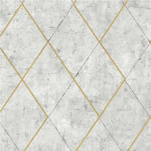 วอลเปเปอร์ลายปูนเปลือยสีเทาอ่อน ใส่เส้นตัดขอบสีทอง No.10240-2