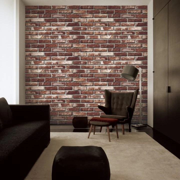 วอลเปเปอร์ลายอิฐน้ำตาลแดง ขนาดก้อนอิฐ 20x5cm. No.85051-3
