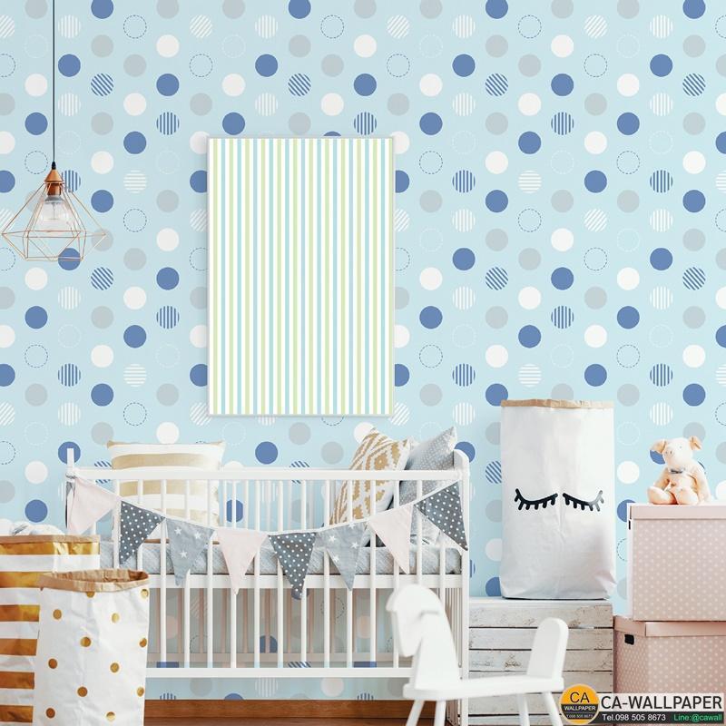 วอลเปเปอร์ลายจุดวงกลม ขนาด 6cm พื้นสีฟ้า NO.88438-2