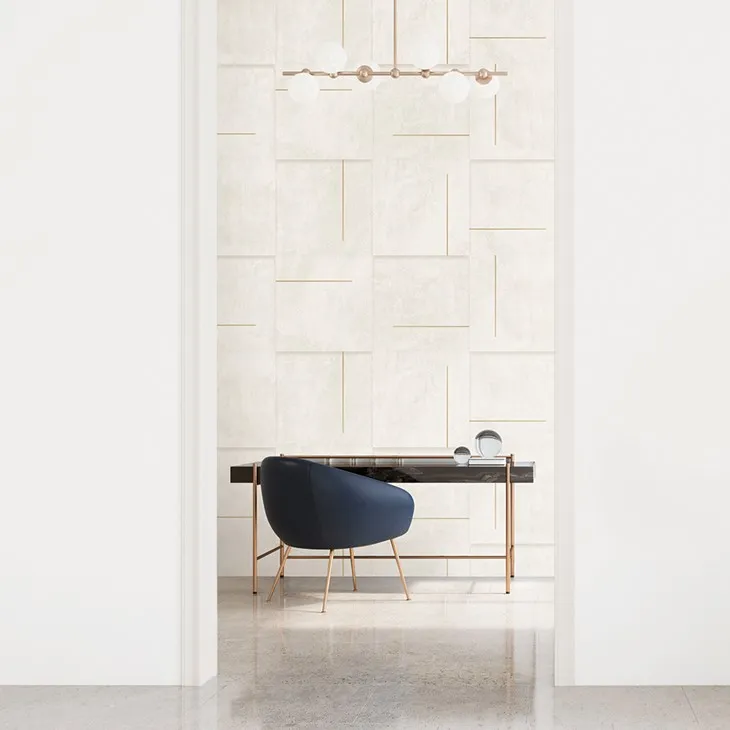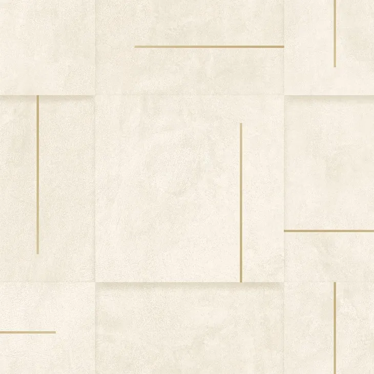 วอลเปเปอร์ลายคอนกรีตสีขาวครีมเส้นสีทอง No.34517-2