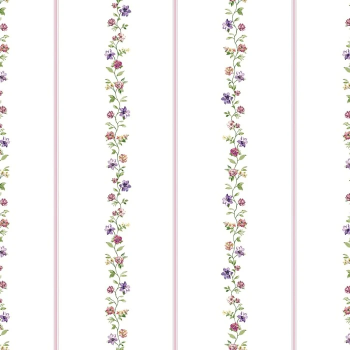 วอลเปเปอร์ลายดอกไม้และลายเส้น พื้นสีขาว No.4030-1