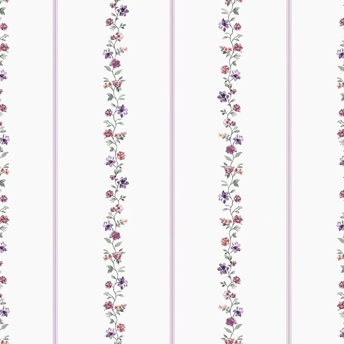 วอลเปเปอร์ลายดอกไม้และลายเส้นสีม่วง พื้นสีเทาอ่อน No.4030-2