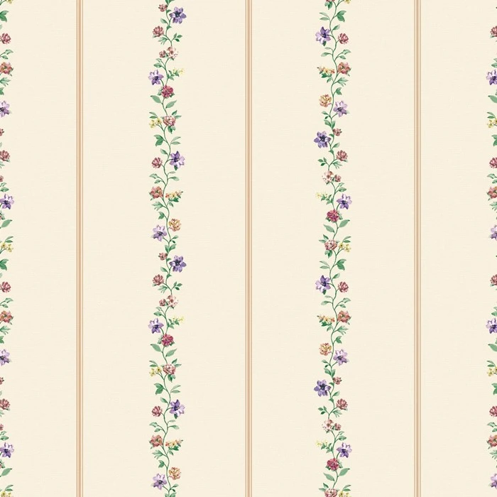 วอลเปเปอร์ลายดอกไม้และลายเส้น พื้นสีครีม No.4030-3