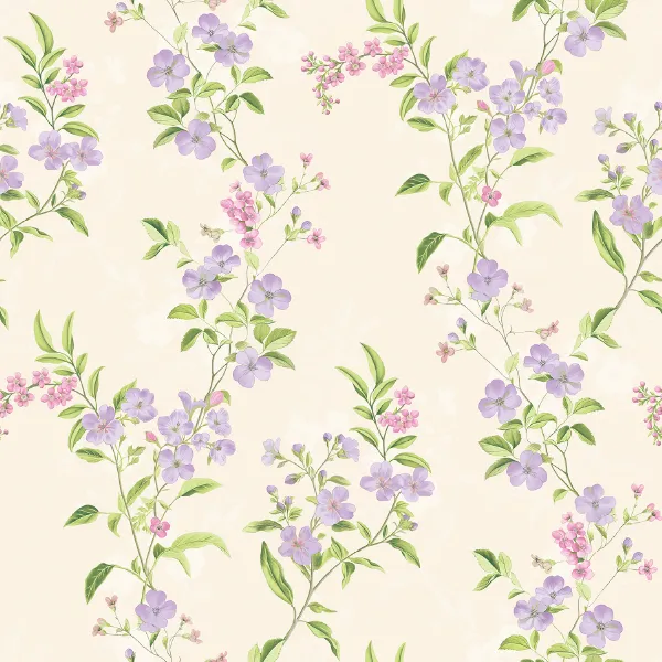 วอลเปเปอร์ลายดอกไม้สีม่วงชมพู พื้นสีครีม No.70517-1