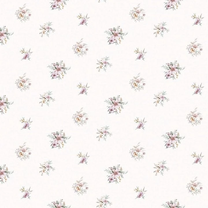 วอลเปเปอร์ลายดอกไม้สีชมพูม่วง ดอกเล็ก พื้นสีขาว มีกลิเตอร์ No.82062-2