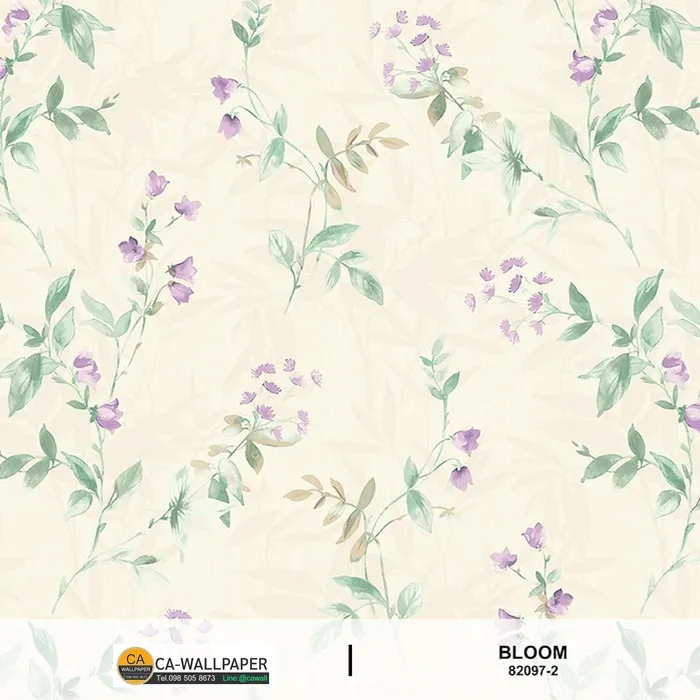 วอลเปเปอร์ลายดอกไม้สีม่วง พื้นสีขาว No.82097-2