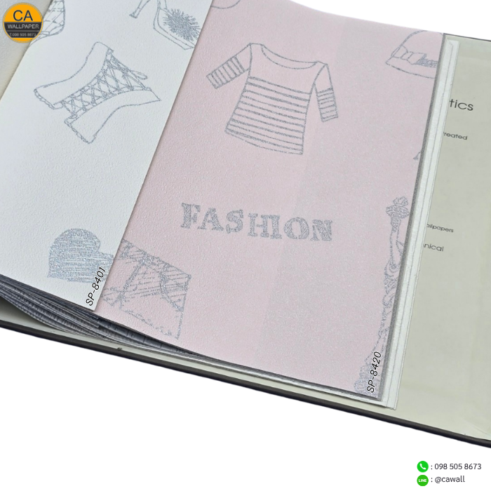 วอลเปเปอร์ลาย ภาพวาดลายเส้นรูปเสื้อผ้า รองเท้า คอร์เซ็ต และตัวอักษร มีกิมมิคความน่ารัก