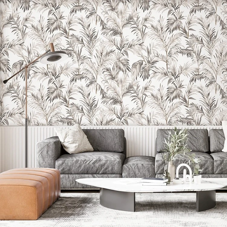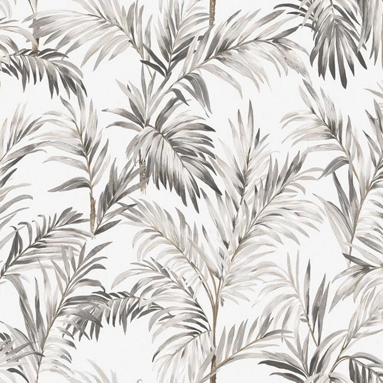 วอลเปเปอร์ลายใบไม้ทรอปิคอล สีเทาพื้นสีขาว No.34527-3