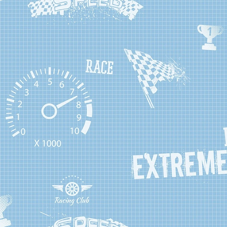 วอลเปเปอร์ห้องเด็ก ลายตารางแข่งรถ พื้นสีฟ้า No.5134-2
