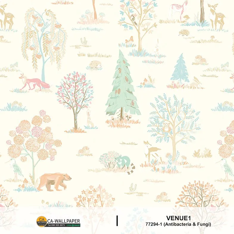 วอลเปเปอร์ห้องเด็ก ลายสัตว์ป่า พื้นสีขาว No.77294-1