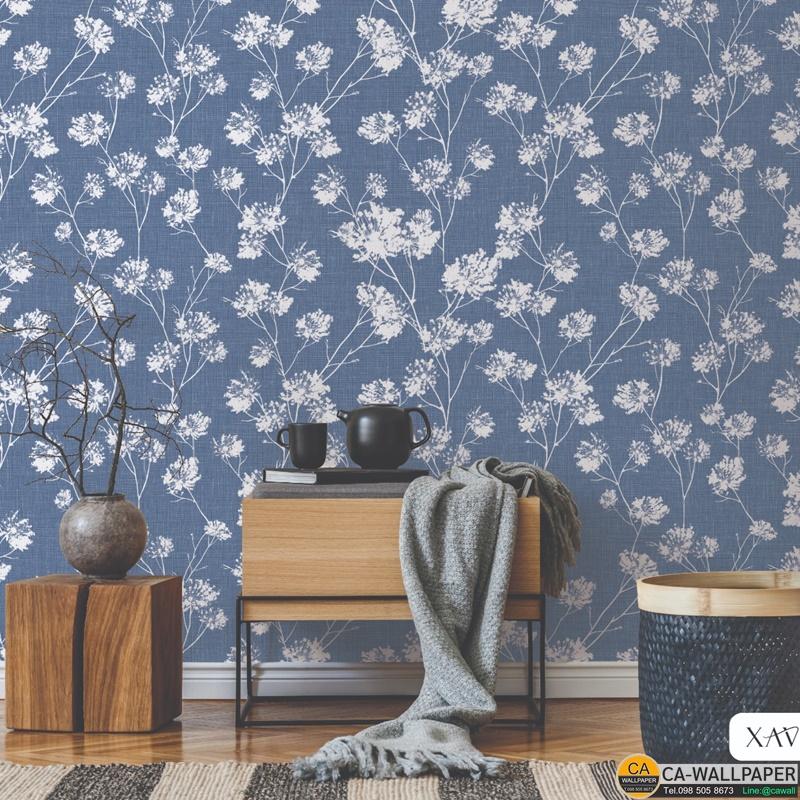 วอลเปเปอร์ลายดอกไม้สีขาว พื้นสีน้ำเงินอมเทา No.3907-4