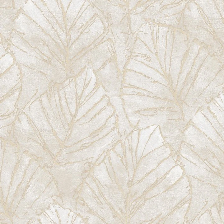 วอลเปเปอร์ลายใบไม้พื้นครีม เส้นสีทอง No.62523-2