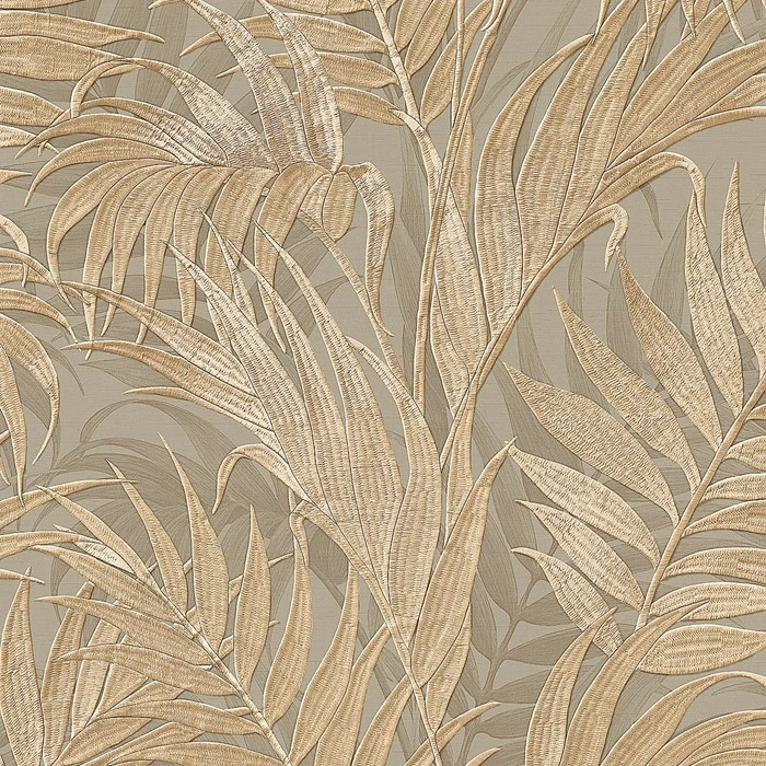 วอลเปเปอร์ลายใบไม้สีทอง พื้นสีน้ำตาลอมเขียม No.GR322105