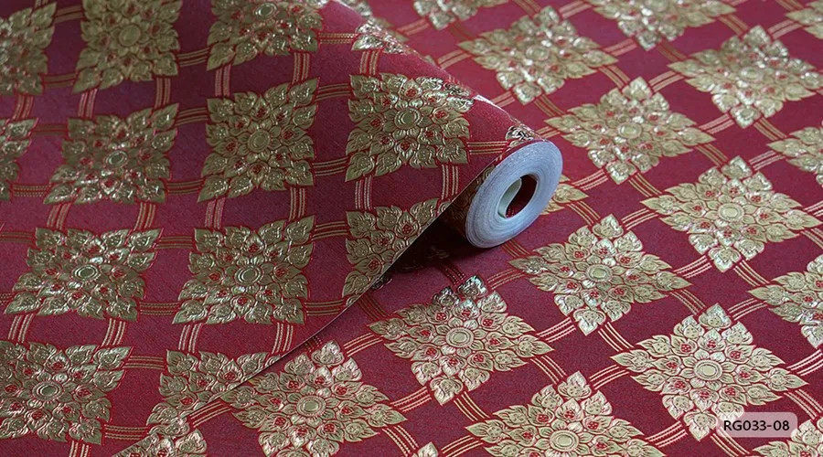 วอลเปเปอร์ลายไทย ลายประจำยามสีทองพื้นสีแดง No.RG033-08