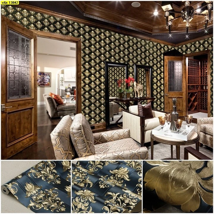 วอลเปเปอร์ลายหลุยส์ สีทองพื้นกรม No.13842