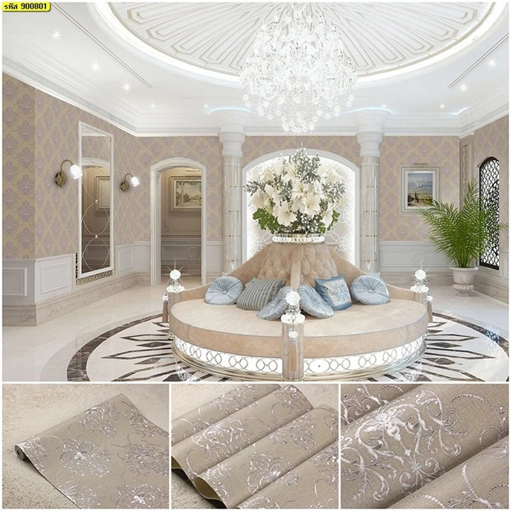 วอลเปเปอร์ลายหลุยส์ สีเทาปนเงิน No.900801