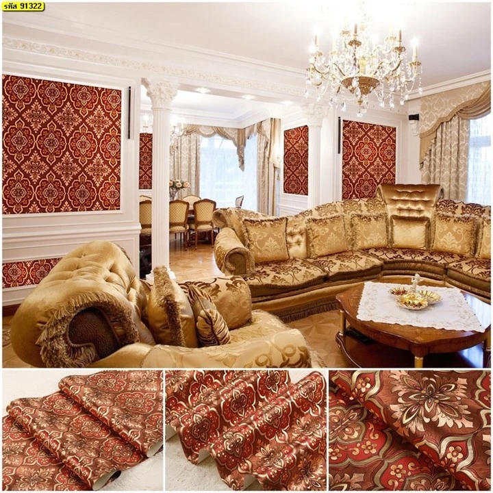 วอลเปเปอร์ลายหลุยส์ สีน้ำตาลแดง No.91322
