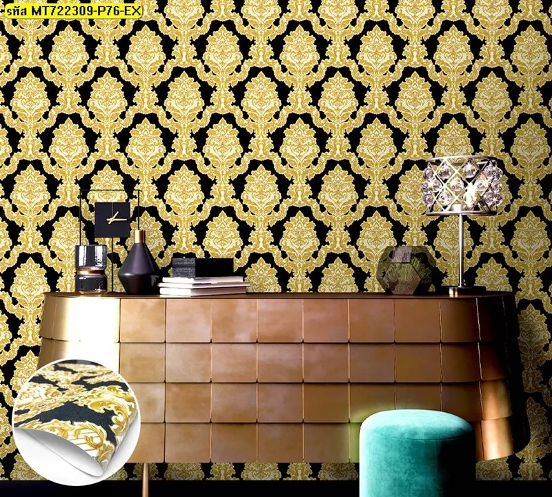 วอลเปเปอร์ลายหลุยส์สีทองพื้นดำ No.MT722309