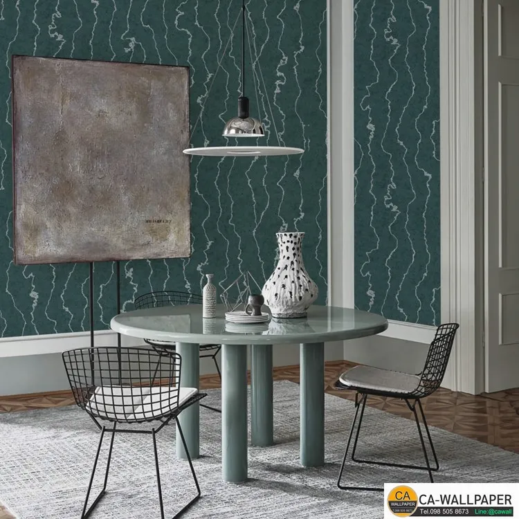 วอลเปเปอร์ลายหินอ่อนสีเงิน พื้นสีเขียวเข้มอมฟ้าฟ้าเข้ม No.88672-3