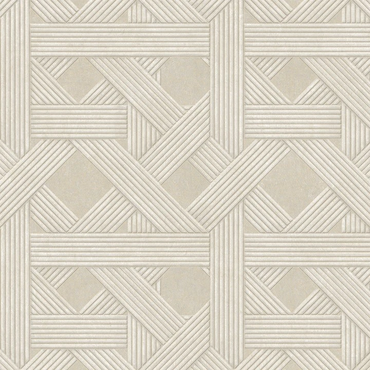 วอลเปเปอร์โมเดิร์นสีครีม ลายตาข่ายสาน พื้นเป็นลายปูน No.34512-2