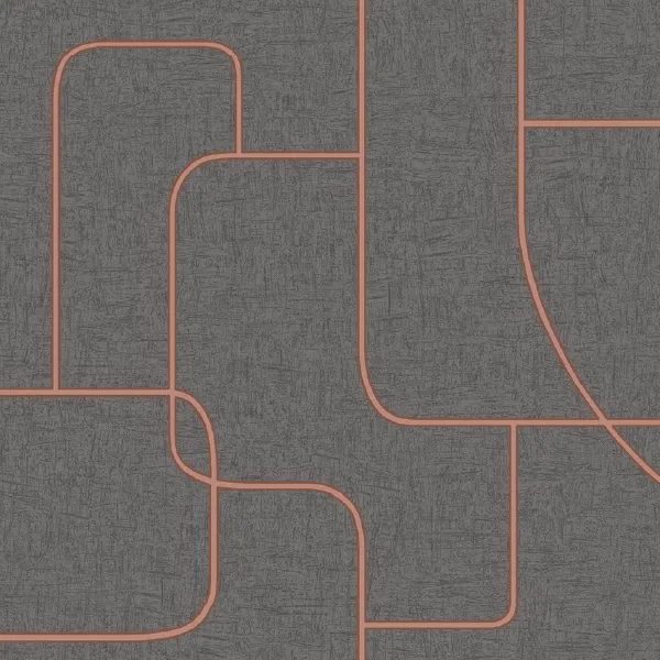 วอลเปเปอร์โมเดิร์น ลายเส้นสีโรสโกลด์ พื้นสีเทาดำ No.52504-3