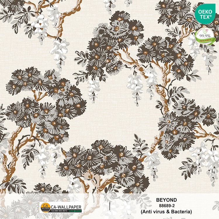 วอลเปเปอร์สไตล์ชิโนริ ลายดอกไม้สีดำ พื้นสีขาว No.88689-2