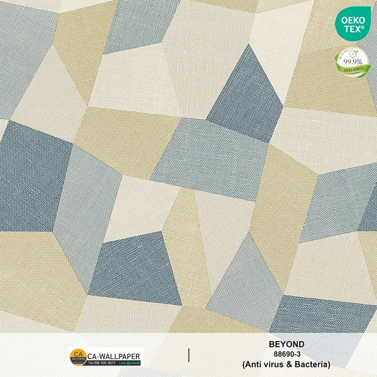 วอลเปเปอร์สไตล์โมเดิร์น ลายเรขาคณิต สีเอิร์ธโทน น้ำเงิน ฟ้า เทา ครีมเหลือง เท็กเจอร์ผ้าลินิน No.88690-3