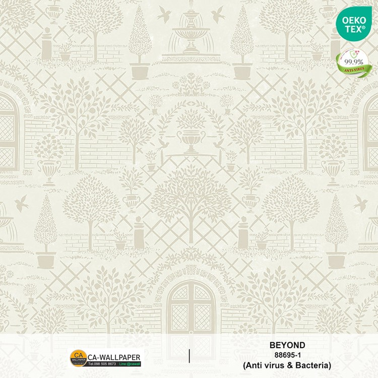 วอลเปเปอร์สไตล์Classic Eropean Garden พื้นหลังสีขาวครีม ลายสีเงิน No.88695-1
