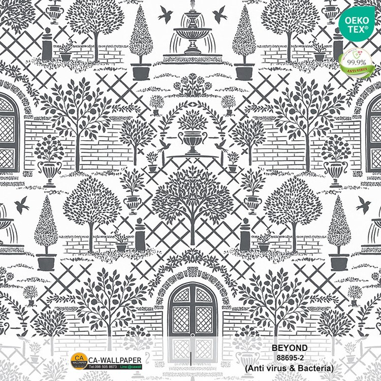 วอลเปเปอร์สไตล์Classic Eropean Garden พื้นหลังสีขาว ลายสีเขียวปนดำ No.88695-2