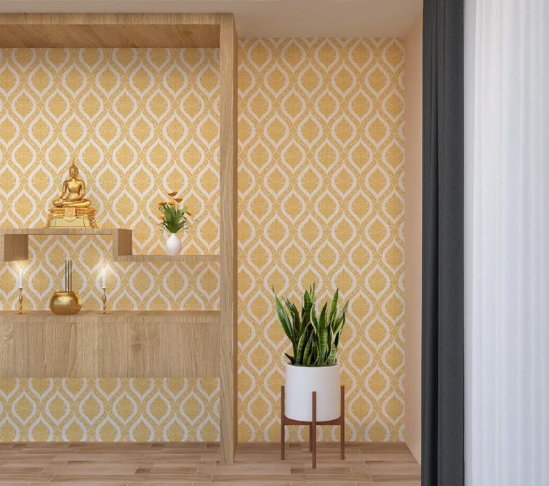 วอลเปเปอร์ลายพุ่มข้าวบิณฑ์ สีทองพื้นขาว รหัส JPS503