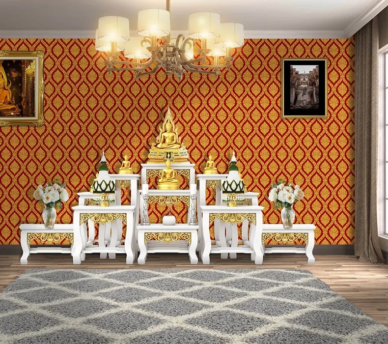 วอลเปเปอร์ลายพุ่มข้าวบิณฑ์ สีแดง รหัส JPS501