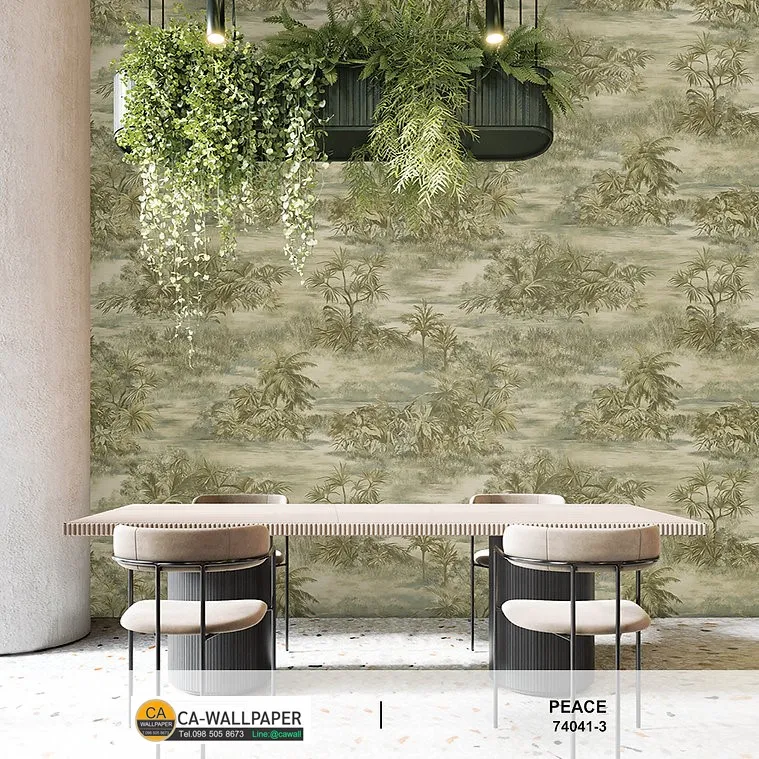 วอลเปเปอร์ทรอปิคอล สีเขียว เหลือง ทอง No.74041-3