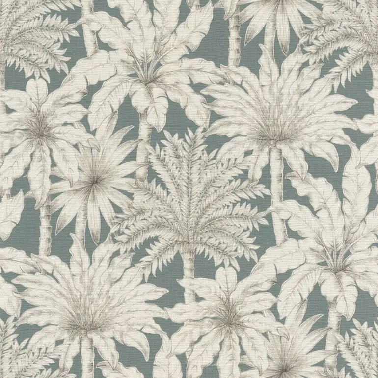 วอลเปเปอร์ลายใบไม้ต้นไม้ พื้นเขียวอมเทา (Tropical Style) No.832723
