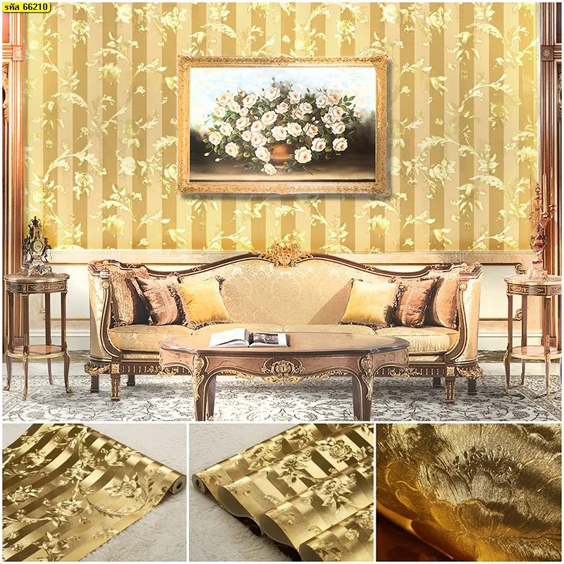 วอลเปเปอร์ลายดอกกุหลาบสีทอง No.66210