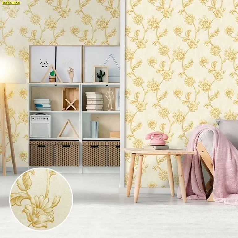 วอลเปเปอร์ลายดอกไม้พื้นครีม No.6A01