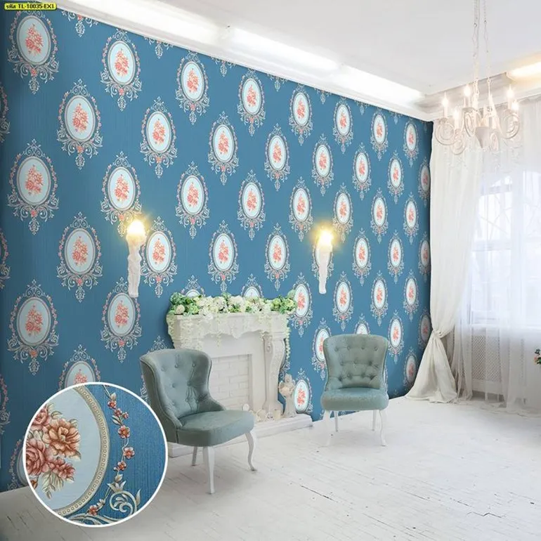 วอลเปเปอร์ลายดอกไม้สีฟ้าเข้ม No.TL-10035