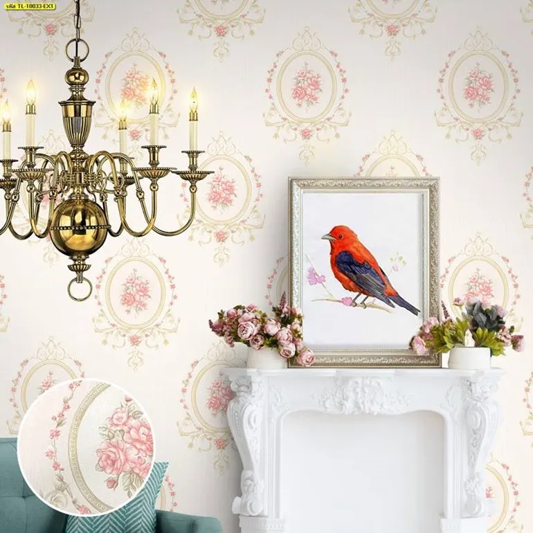 วอลเปเปอร์ลายดอกไม้พื้นชมพู No.TL-10033