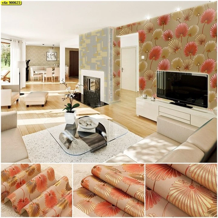 วอลเปเปอร์ลายพัดสีแดง พื้นสีครีม No.900623