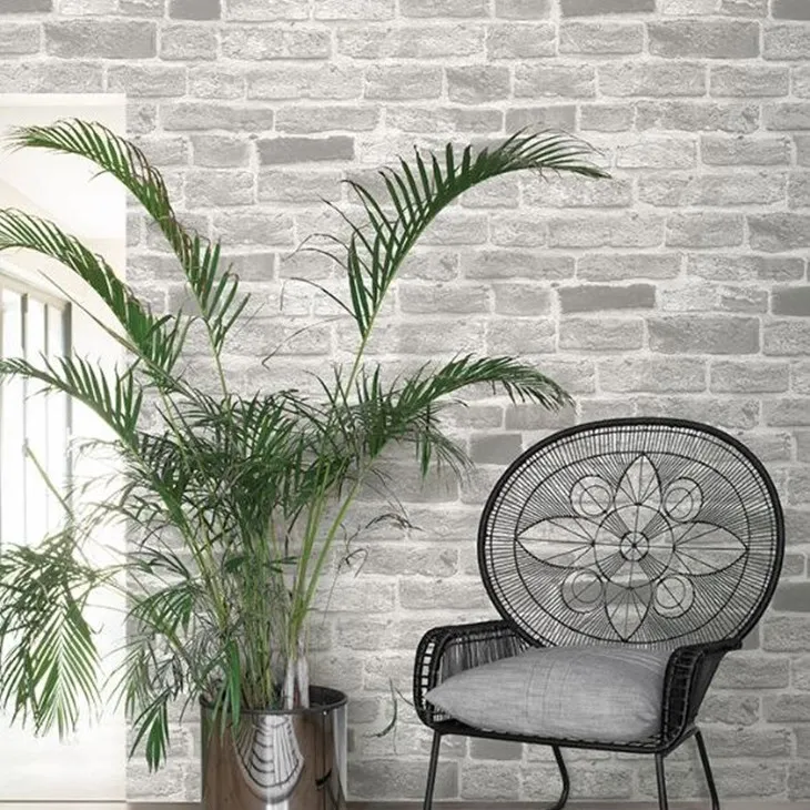 วอลเปเปอร์ลายอิฐสีขาวเทา ขนาดก้อนอิฐ 19x6cm. No.85087-1